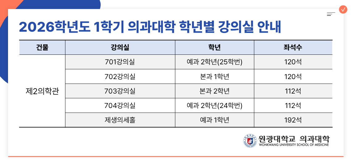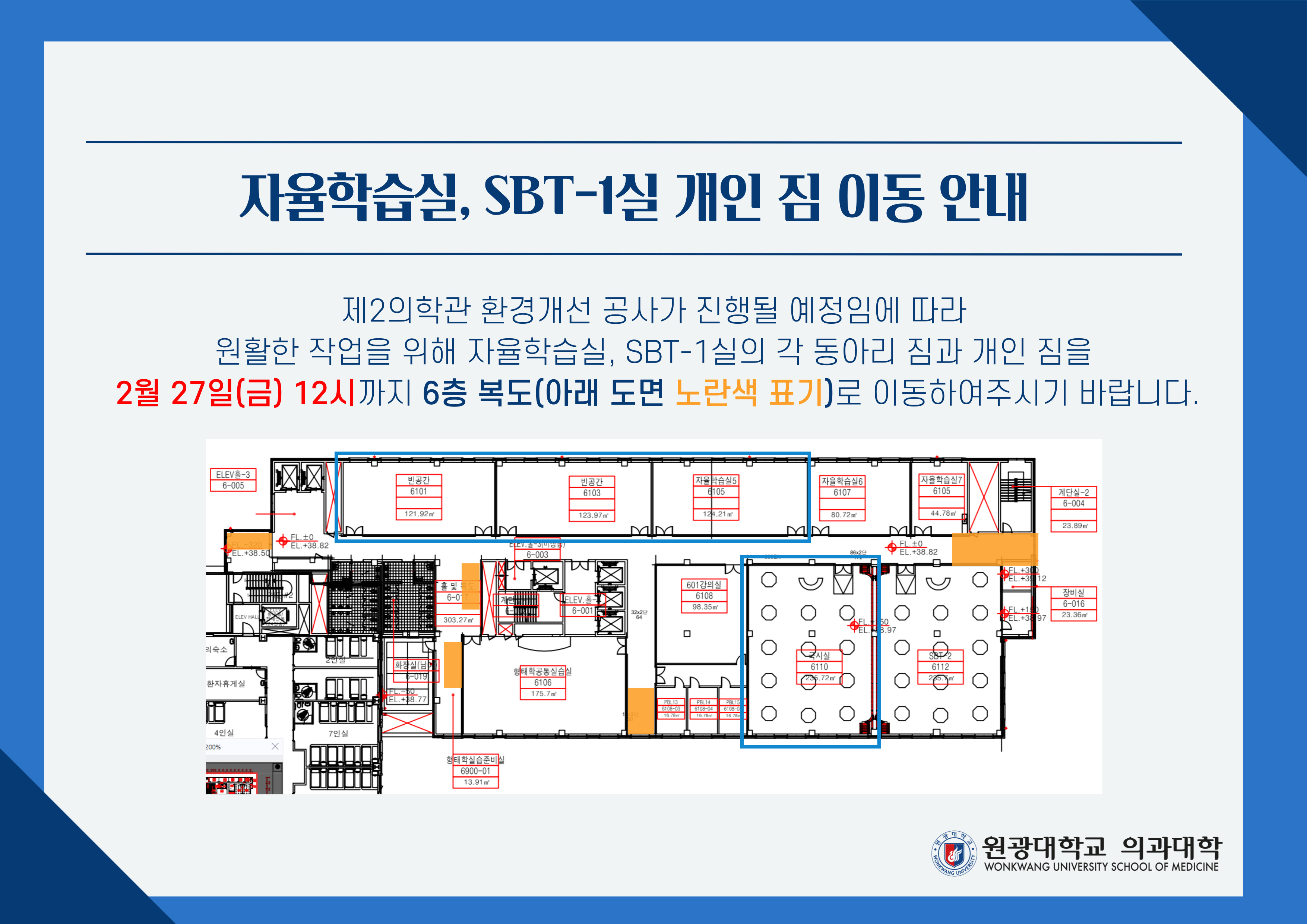안녕하세요. 의과대학 교학과입니다. 제2의학관 환경개선
