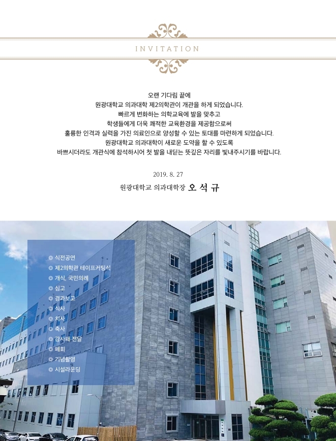 ‘제2의학관 개관식 초대장’ ■ 일시 :