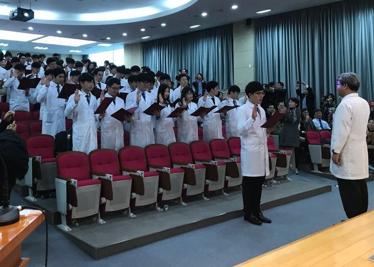 의학과 3학년부터 본격적으로 시작되는 임상의학 실습에 앞서 급변하는 의료 환경에서도 참된 의학도의 정신을 잃지 않고 고귀하고 소중한 생명의 의미를 되새기며 앞으로 훌륭한 인격과, 실력을 가진 의사가 되기 위한 새로운 각오를 다지는 시간을 가졌습니다.