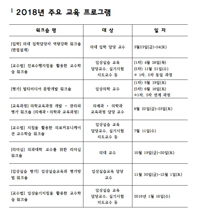 2018년 주요 교육 프로그램