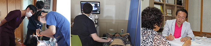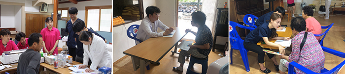 원불교 의과대학 학생회(지도교수 최운정 / 이하 원의회)는 지난 11일부터 12일까지 이틀 동안 진안군 성수면 좌포리 대산종사 생가터에서 하계진료봉사를 펼쳤다. 원의회는 1986년(원기 71년) 동아리 창립 이래 영산성지 의료 활동을 시작으로 33년간 3회의 해외 의료봉사(연변 2회, 몽골 1회)를 비롯해 30회의 국내 의료봉사를 진행했으며, 회원들은 원의회 가입 후 학생시절 첫 의료봉사에 이어 졸업 후 의사, 전문의, 교수가 된 후에도 꾸준히 봉사에 참여하는 등 원의회 정신을 이어가고 있다. 본과 4학년 강성주 의료반장은 “의료봉사는 어떤 의사가 되어야 할지 방향을 알 수 있어 지역 주민들께 해드리는 것보다 오히려 더 많이 받아가는 가는 것 같다”며, “졸업 후에도 지속적으로 봉사에 참여 하겠다”는 의지를 밝혔다. 이번 봉사는 ‘2018 좌포, 열정에 열정을 담다’를 주제로 진행됐으며, 이틀간 총 301명의 주민들이 방문해 유방갑상선외과, 신경과, 소화기내과, 정신의학과, 영상의학과, 안과, 마취통증의학과, 치과, 한방과 등 총 9개과에서 진료를 받았다. 특히 의료진은 3억원 상당의 초음파 기계 등 진료에 필요한 물품을 6개월 전부터 준비하면서 의료봉사를 기획했으며, 한의과대학 원불교 동아리(봉황)와 치과대학 의료진(대전치과병원 임헌준 교수 외 5명)을 초청해 한방 및 치과 진료도 제공해 대산종사가 주창한 일원의학의 소중함을 실천했다. 임헌준 교수는 “원의회의 체계적인 의료봉사 시스템에 놀라고, 각 의료진의 열정에 한 번 더 감탄했다”며, “의료인으로 살아가면서 소중한 경험을 한 기회였다”고 소감을 전했다. 또한, 폭염 속에서도 학생들은 미소를 잃지 않는 모습으로 주민들을 맞아 호평을 받았으며, 의료봉사와 함께 진행된 발맛사지와 발스크럽을 통해 의료인으로서 겸손의 자세를 체험하기도 했다. 김재원(본과2년) 원의회 학생회장은 “하계의료봉사는 년 중 가장 큰 행사로 원의회졸업의사회에서 이번 의료봉사를 위해 약 600만원의 후원금을 모아 기부해주셨다”며, “후배들은 선배님들의 정신을 이어받아 방학을 반납하고, 봉사활동 준비를 했다”고 말했다. 학생들과 함께한 대학교당 최현교 지도 교무는 “대산종사님 탄생가에서 진행된 의료봉사를 통해 몸소 실천하며 통일된 마음의 소리로 자신과 주변 인연들을 비롯하여 지역 주민들에게 큰 울림으로 살아있는 제생의세 정신이 깊어지길 바란다”고 기원했다. 한편, 이번 의료봉사는 대학교당이 주최하고, 원의회 및 원의회졸업의사회가 주관한 가운데 의과대학, 한의과대학 봉황, 의과대학 간호학과 백목련, 대전 치과병원, 대학교당, 익산약국, 전주 효자교당 등 20여 개 단체가 후원했으며, 원의회를 창립한 김일성 교무는 원불교 좌포교당 사무실에 에어컨을 기부하고, 봉사 후 남은 예산을 좌포교당과 만덕산 훈련원에 기부하기도 했다. 최운정 지도교수는 “봉사란 일방적인 단순 시혜가 아니며, 참여자들이 느끼는 감동과 보람은 그 이상으로 보답하는 쌍방향적 소통임에 틀림없다”며, “원의회는 국내뿐만 아니라 해외에서도 지속적으로 인류애를 전달 할 수 있는 의료봉사를 해나갈 것”이라고 향후 계획을 밝혔다.