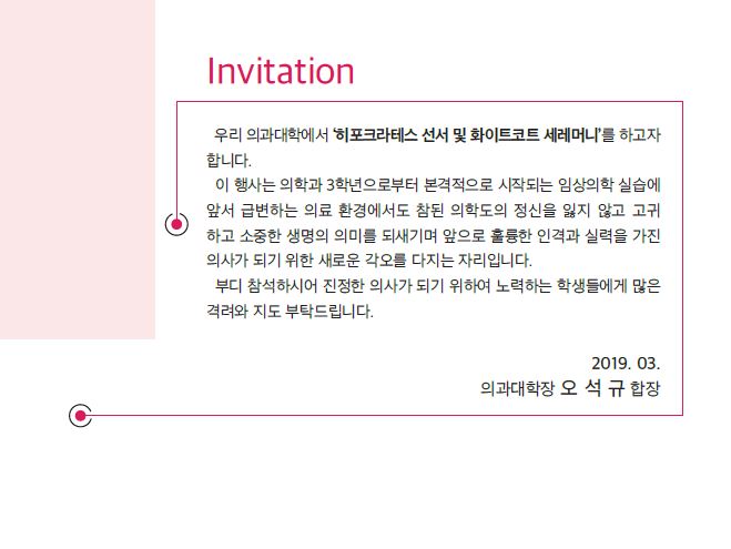 2019년도 히포크라테스 선서 초대장