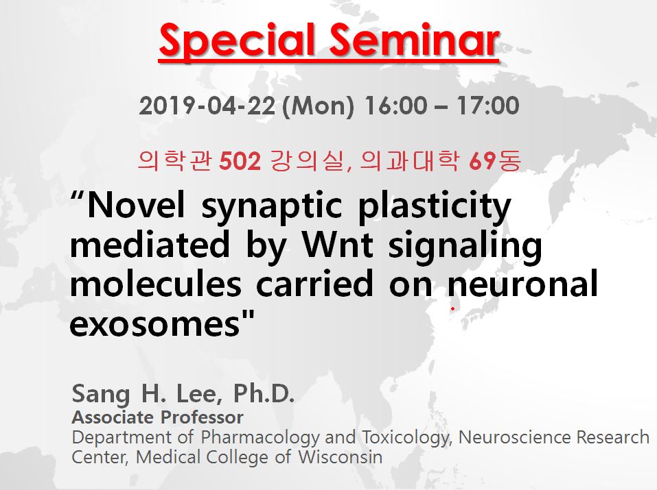 ● 연자 : Sang H. Lee(이 상형) 교수님, Department of Pharmacology and Toxicology, Neuroscience Research Center, Medical College of Wisconsin