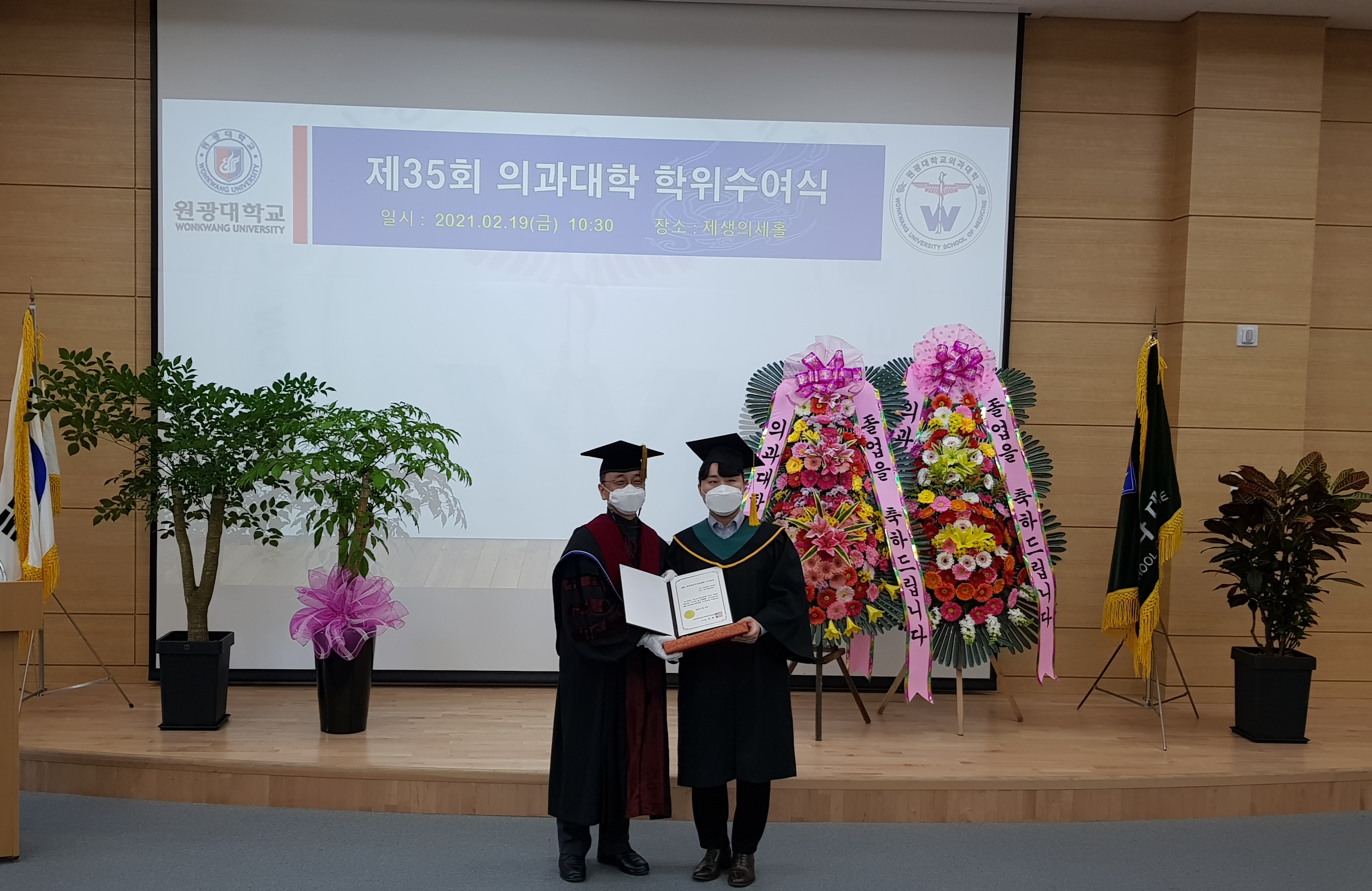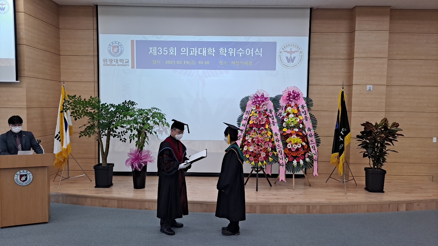 2021년 2월 19일, 제35회 의과대학 학위수여식이 진행되었습니다. 코로나19로 인해 최소인원만 참석하여