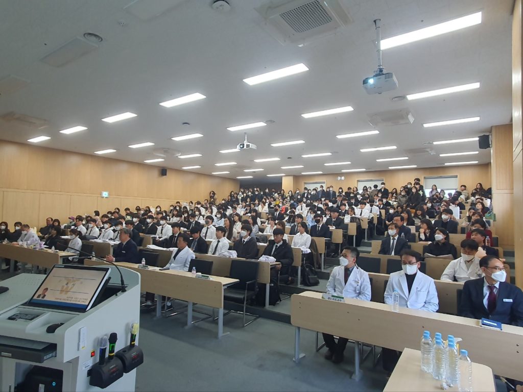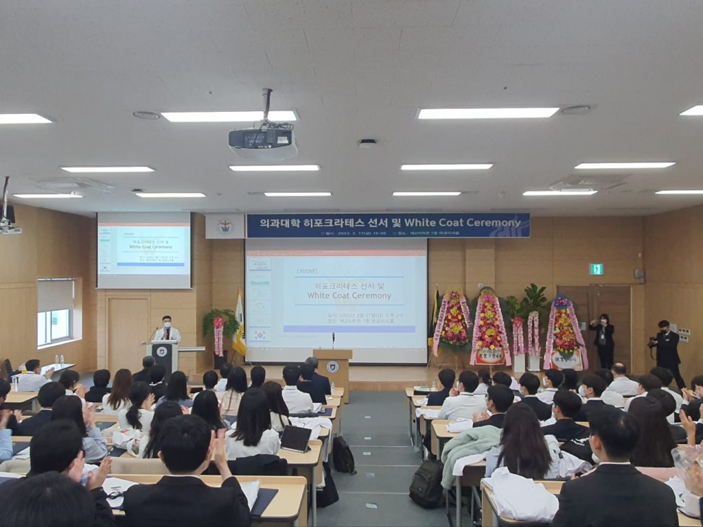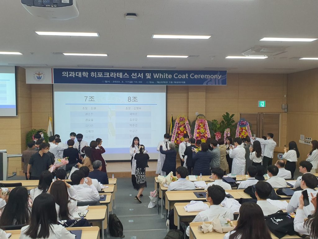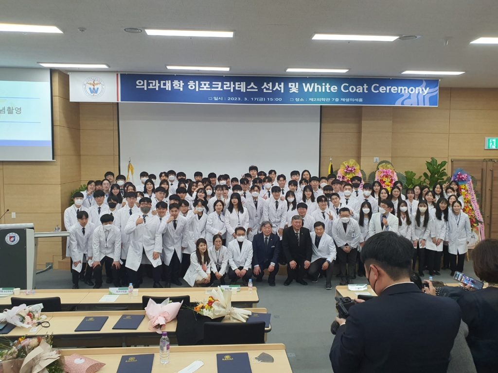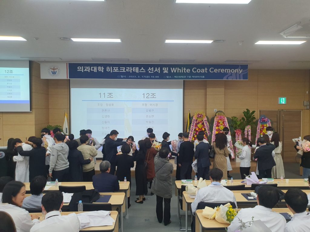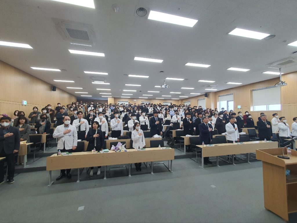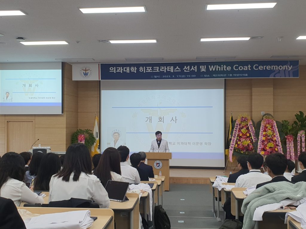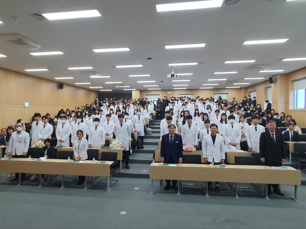 2023학년도를 맞이하여 의학과 3학년부터 본격적으로 시작되는 임상의학 실습에 앞서 급변하는 의료 환경에서도 참된 의학도의 정신을 잃지 않고 고귀하고 소중한 생명의 의미를 되새기며 앞으로 훌륭한 인격과, 실력을 가진 의사가 되기 위한 새로운 각오를 행사에 참여하신 수많은 학부모님들과 귀빈들에게 보여드림으로써 값진 시간을 가지게 되었습니다.