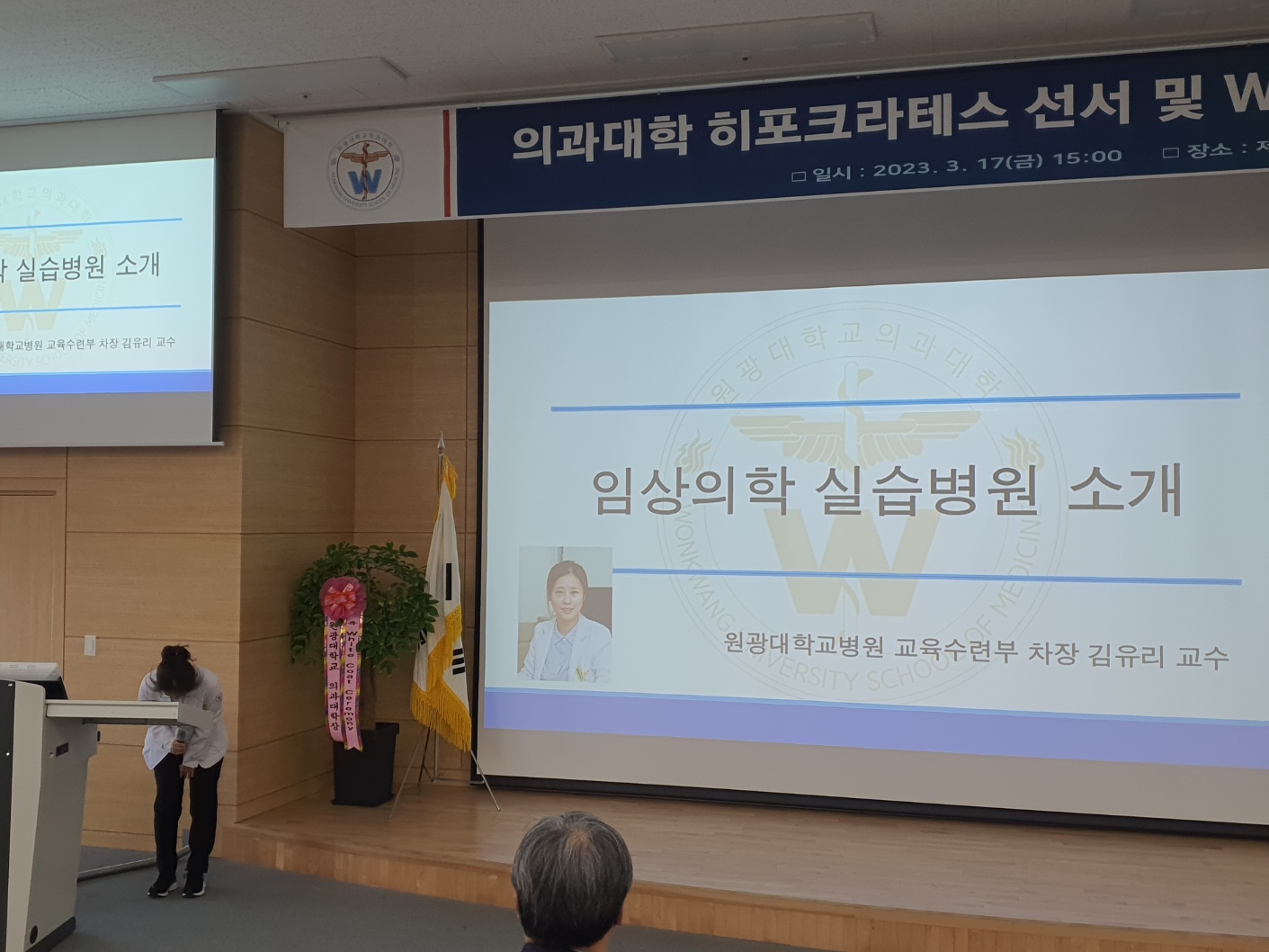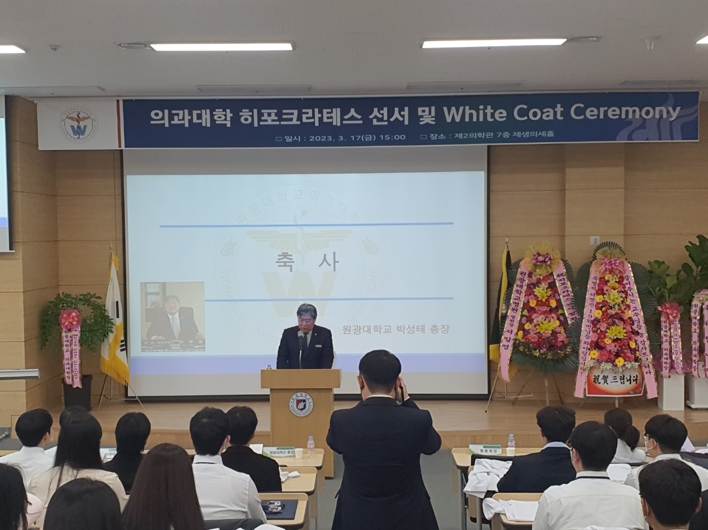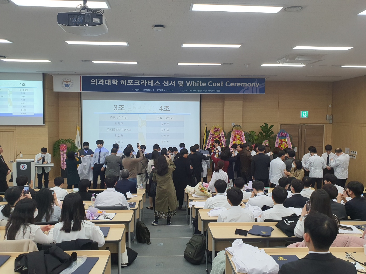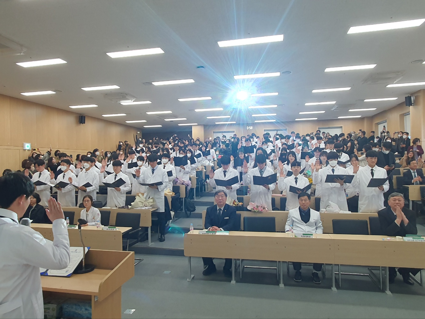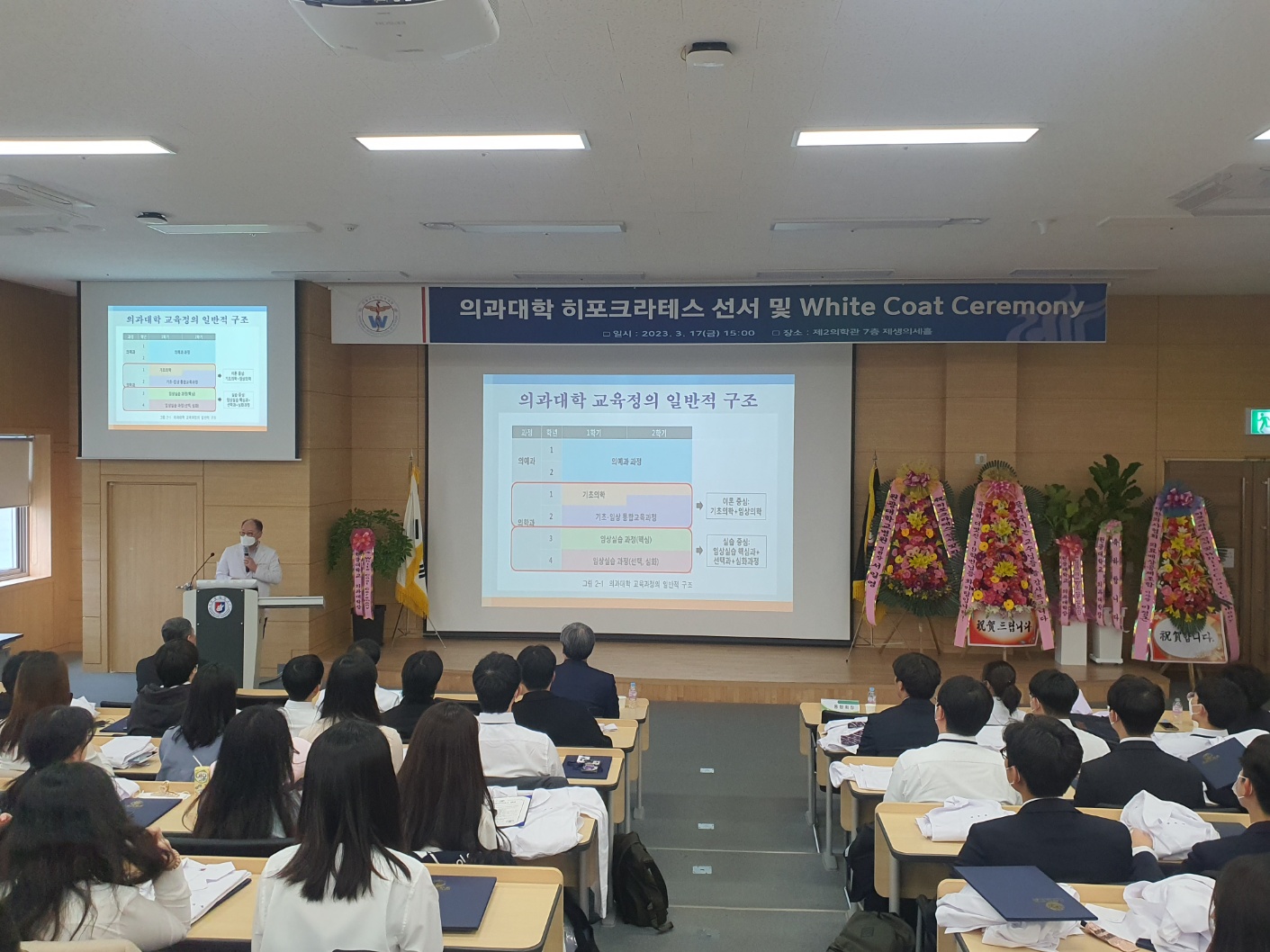 2023학년도를 맞이하여 의학과 3학년부터 본격적으로 시작되는 임상의학 실습에 앞서 급변하는 의료 환경에서도 참된 의학도의 정신을 잃지 않고 고귀하고 소중한 생명의 의미를 되새기며 앞으로 훌륭한 인격과, 실력을 가진 의사가 되기 위한 새로운 각오를 행사에 참여하신 수많은 학부모님들과 귀빈들에게 보여드림으로써 값진 시간을 가지게 되었습니다.