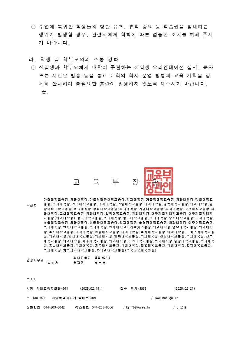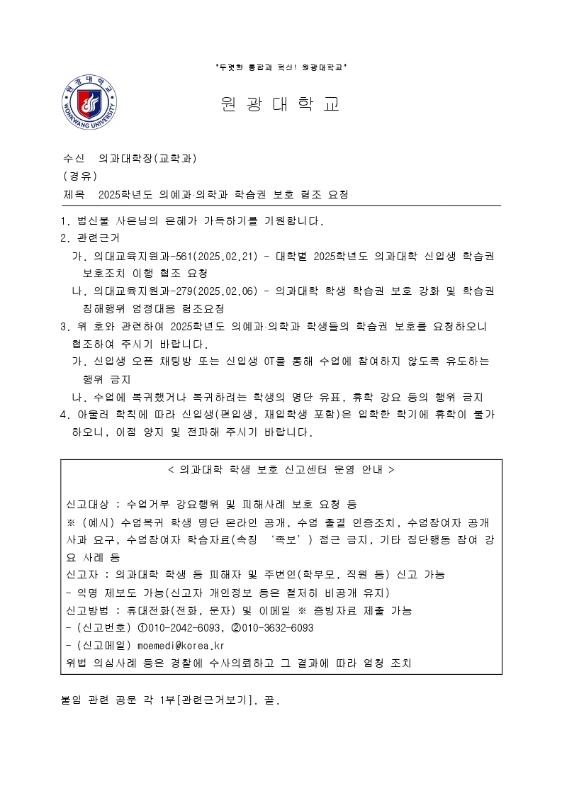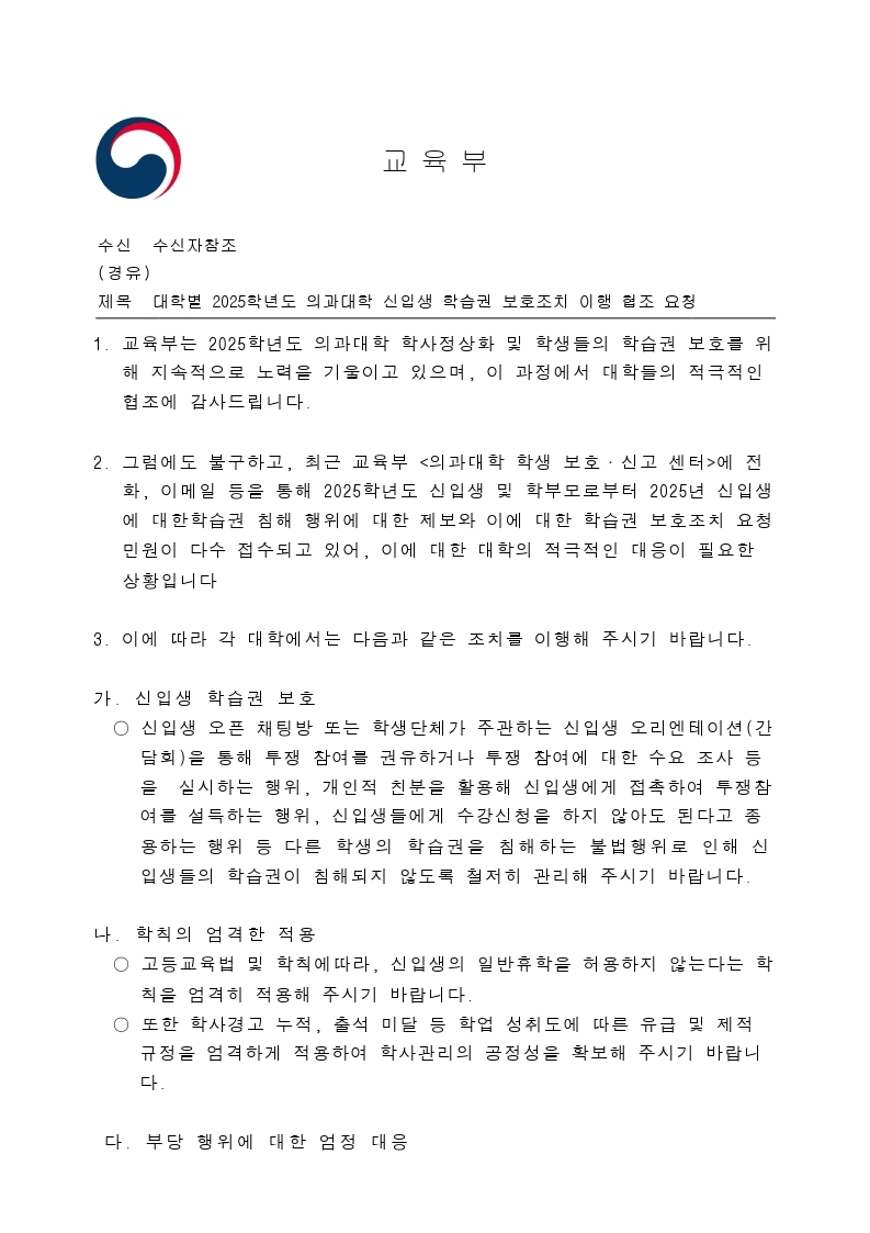 2025학년도 의예과‧의학과 학습권 보호 관련 안내