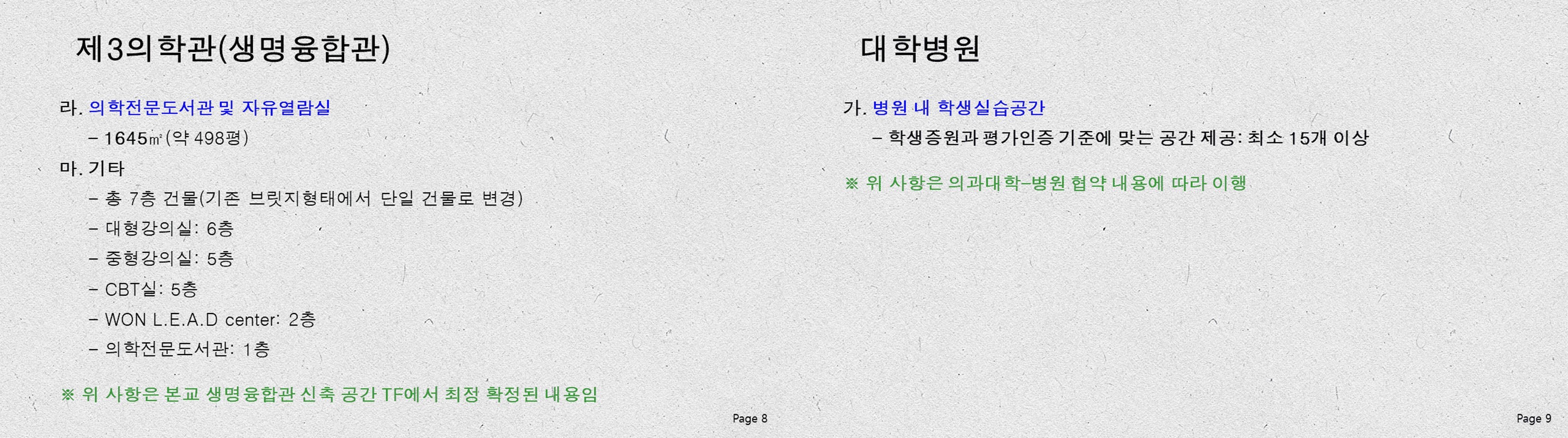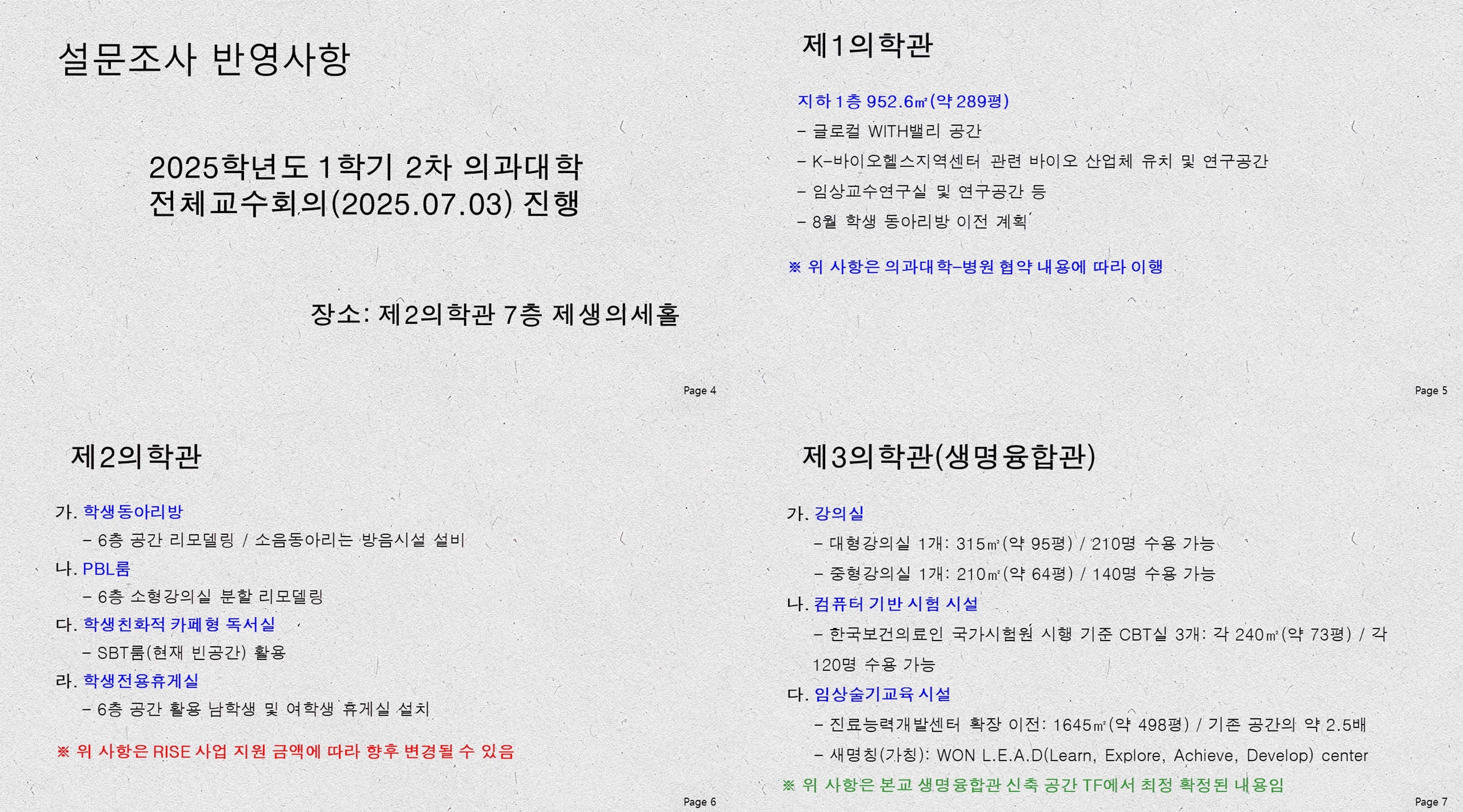 의과대학 교육 공간·환경 개선 의견 수렴 결과 및 진행 사항 안내
