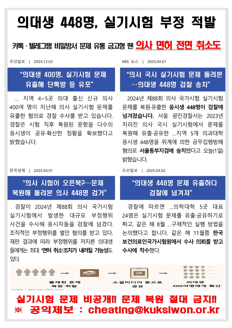 의사 국가시험 실기시험 문제복원 행위 예방 협조 요청