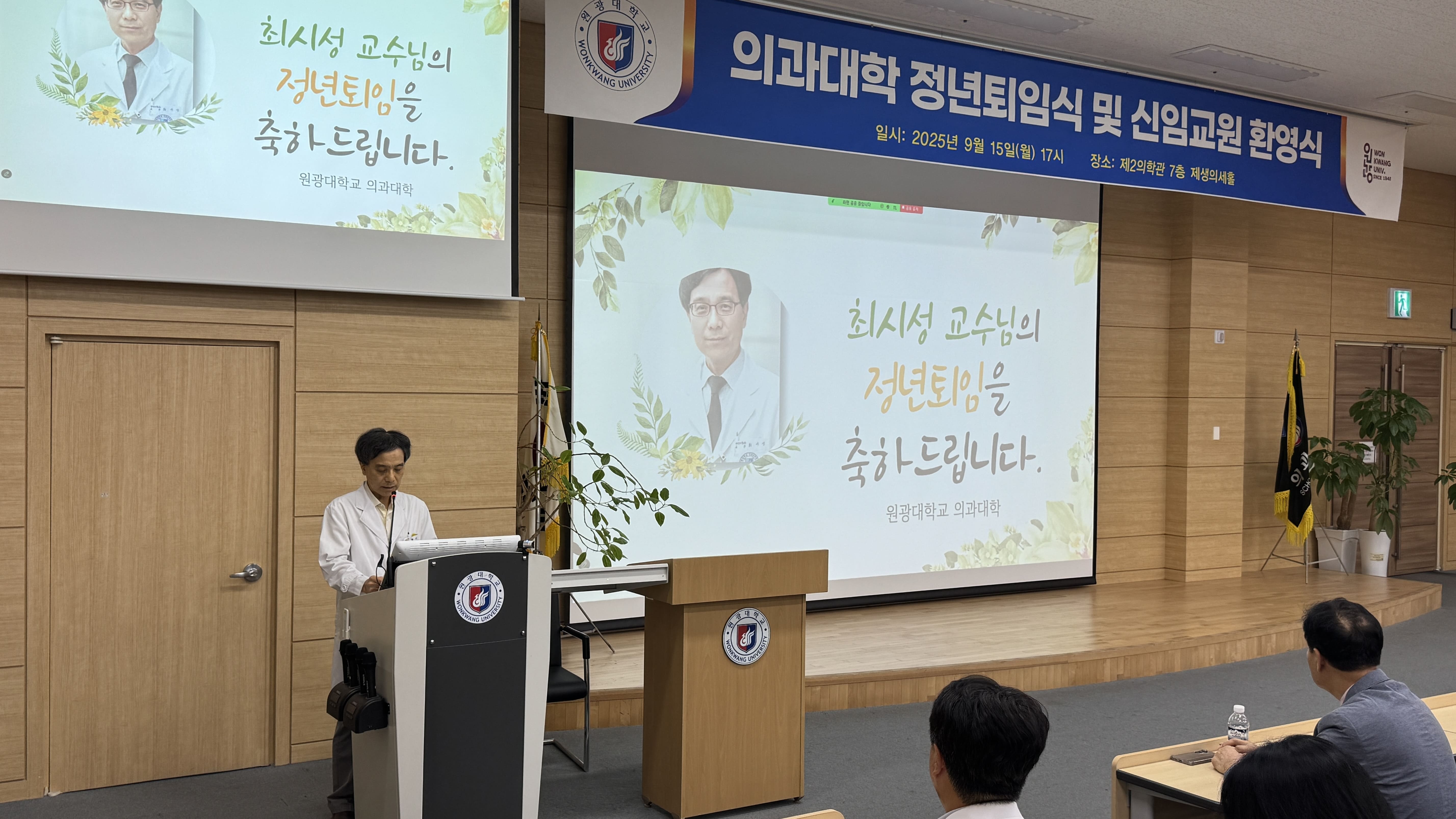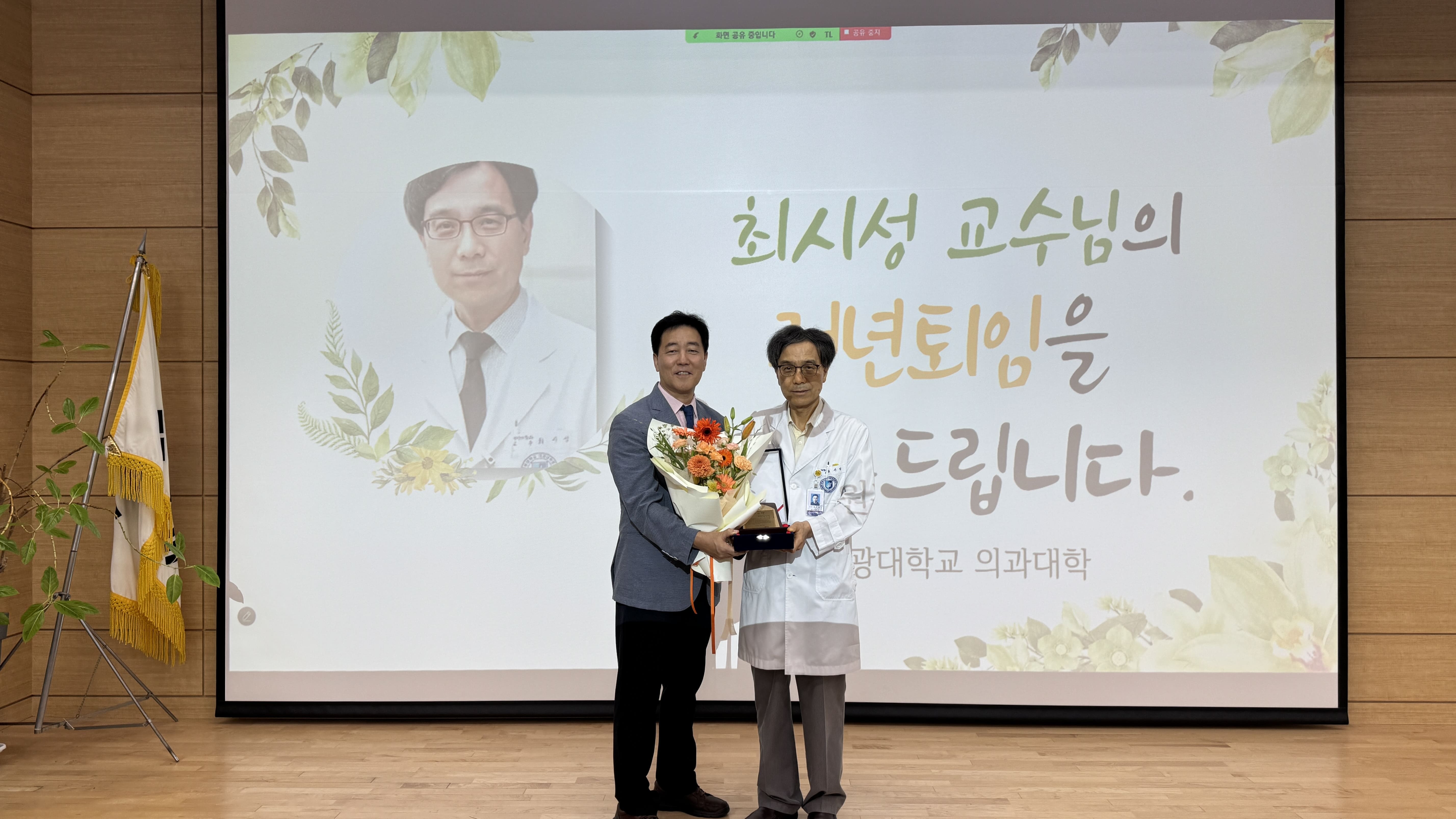 의학과 최시성 교수님(영상의학과)의 정년퇴임과 의과대학 소재웅 주사님(동물사육실)의 퇴임 그리고 의예과 조윤주 교수님(미생물학)과 변정태 교수님(순환기내과)의 신규 임용을 진심으로 축하드립니다.