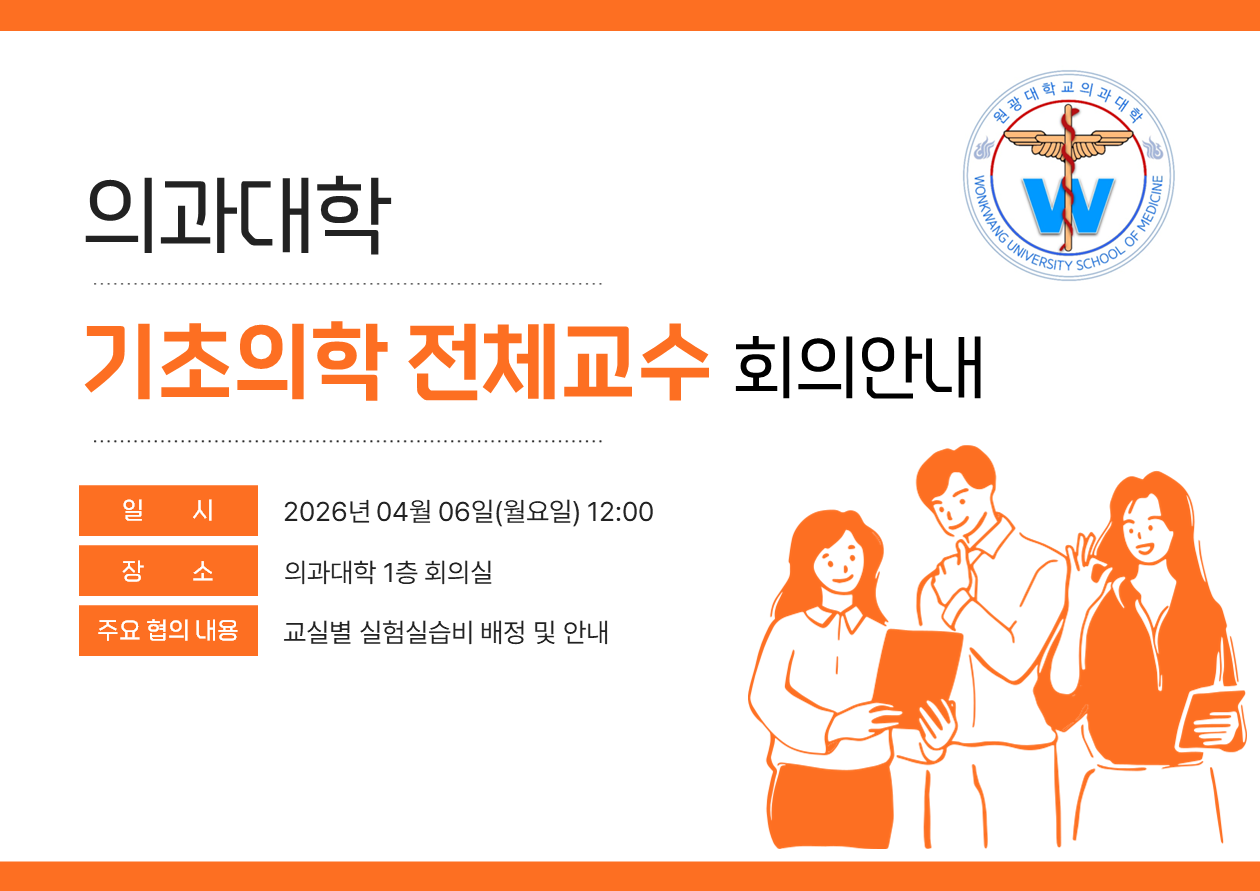 2026학년도 의과대학 기초의학 전체교수회의(1차) 안내