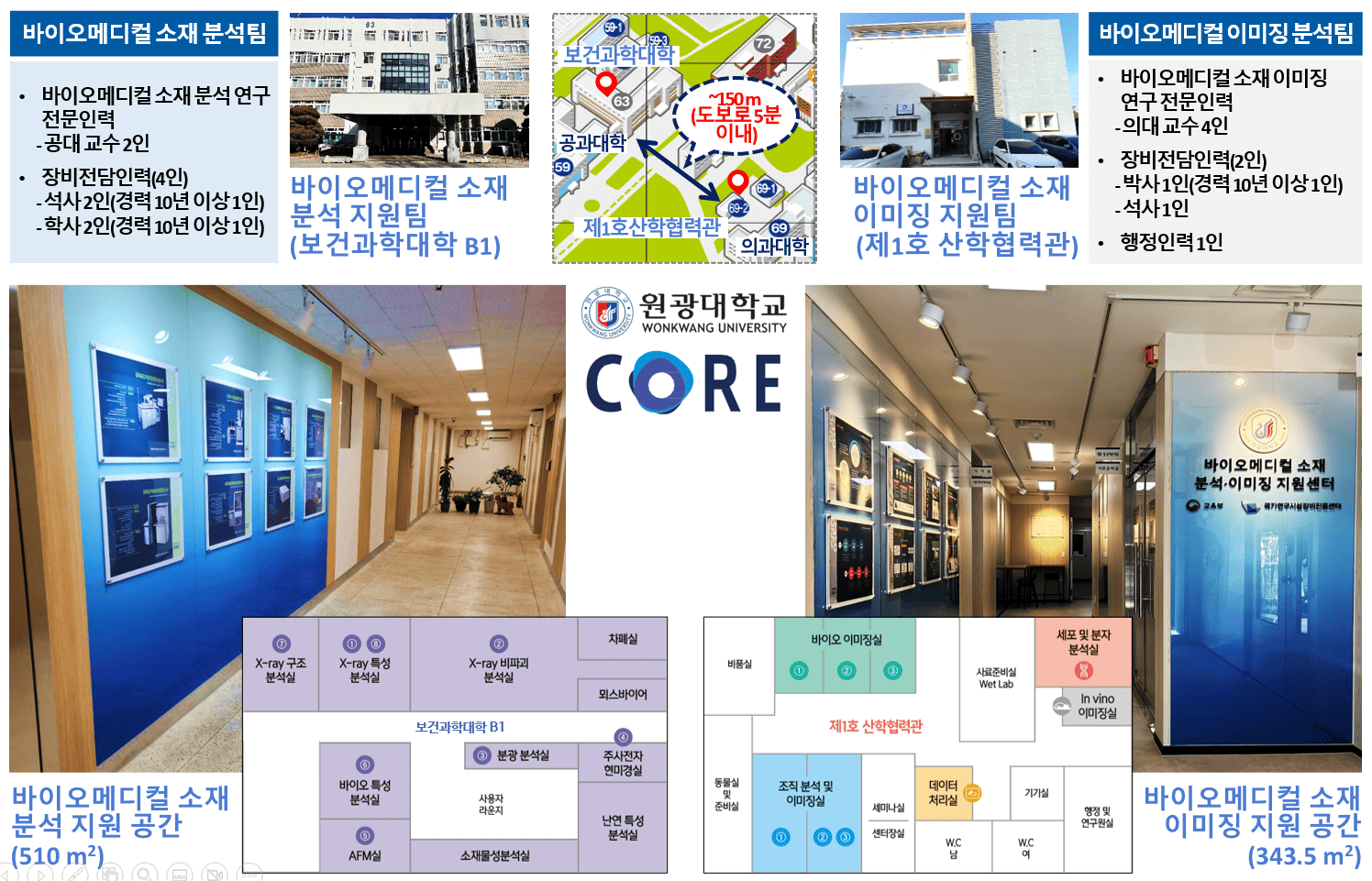 주소) 전라북도 익산시 익산대로 460 원광대학교 제1호산학협력관 1층(바이오메디컬소재분석이미징지원센터)